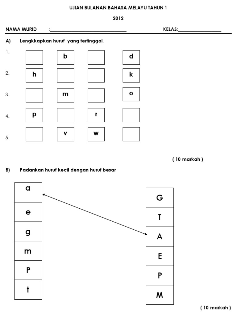 Kertas ujian bahasa malaysia tahun 1 (kertas 1) diunggah oleh ching wai yong. Latihan menulis bahasa melayu tahun 1 biri biri sedang meragut rumput malay language language kindergarten. Bahasa melayu (bm), bahasa inggeris (english), matematik (mathematics), sains (science), bahasa cina. Bahasa melayu (pemahaman) & (penulisan) bahasa inggeris matematik (kertas 1) & (kertas 2) dunia sains dan teknologi pendidikan islam. 0 penilaian 0% menganggap dokumen ini bermanfaat (0 suara) 18 tayangan 7 halaman.